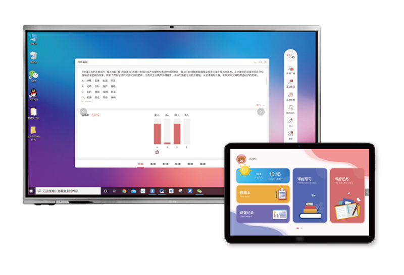 PAD教学搭配智慧教学终端、文香智慧学习终端实现课前、课中、课后全场景互动教学与学习,提高教师教学效率,丰富教学模式,提升学生学习成效,通过数据分析精 准化教学帮助学生全面成长。